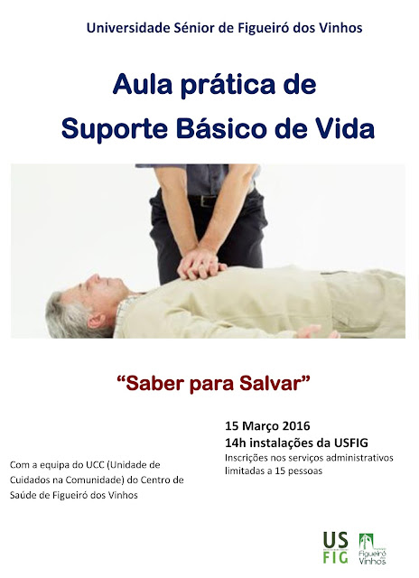 No próximo dia 15 de março, às 14h, nas instalações da USFIG, teremos uma Aula Prática sobre Suporte Básico de Vida com o tema "Saber para Salvar". Esta atividade será desenvolvida pelos enfermeiros do UCC (Unidade de Cuidados na Comunidade) do Centro de Saúde de Figueiró dos Vinhos para os alunos da nossa universidade.